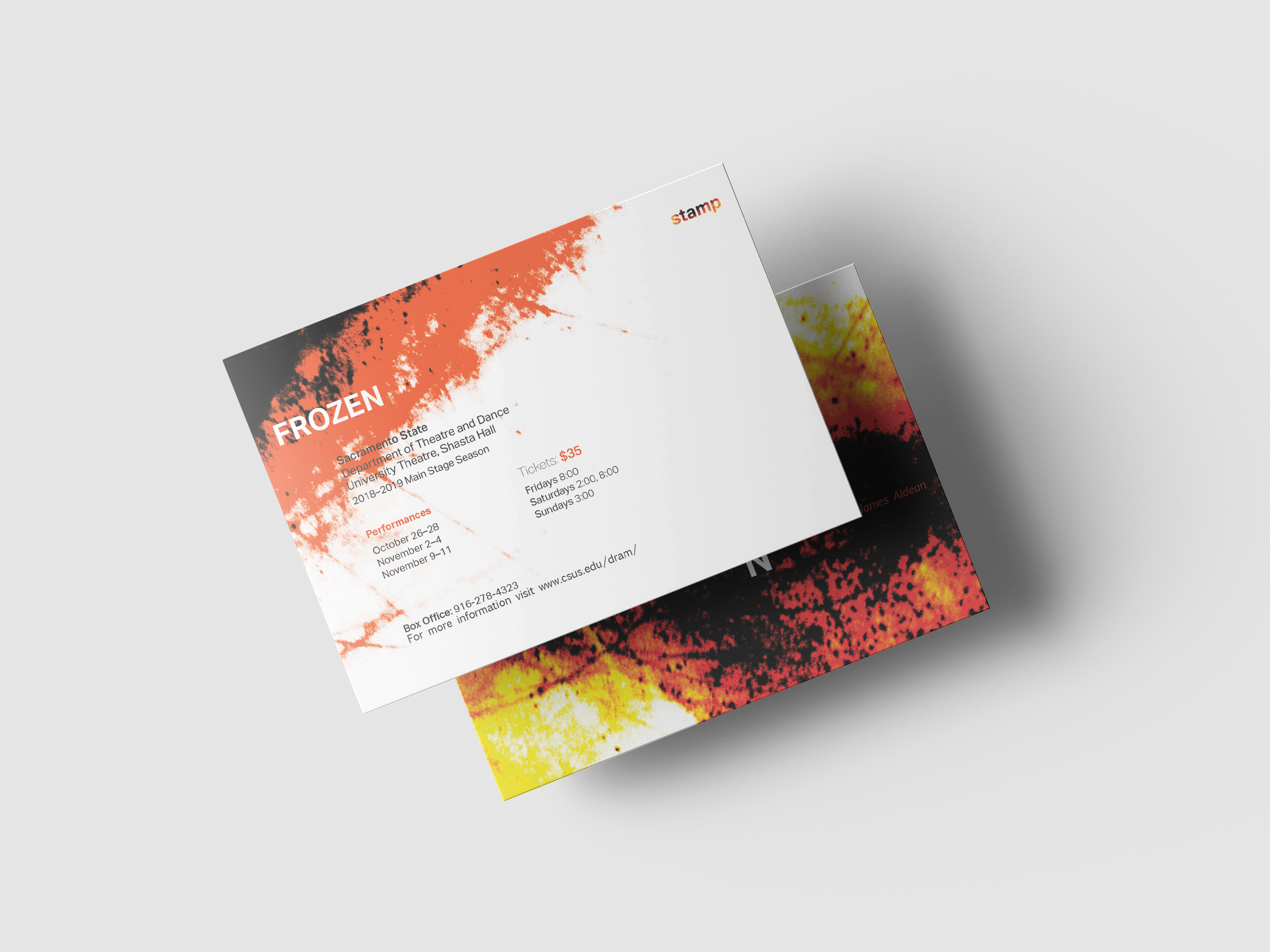As a student, I created a postcard based on the play Frozen by Bryony Lavery. This postcard features elements that relate to the play. The play has dark themes with elements of murder, youth, parenting, forgiveness and a range of emotions.